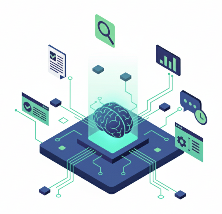 Maak je software intelligent. Van een systeem dat zelfstandig facturen herkent tot een hulpje dat patronen ziet in je data: wij bouwen AI-oplossingen die precies passen bij jouw bedrijf en direct werk uit handen nemen.